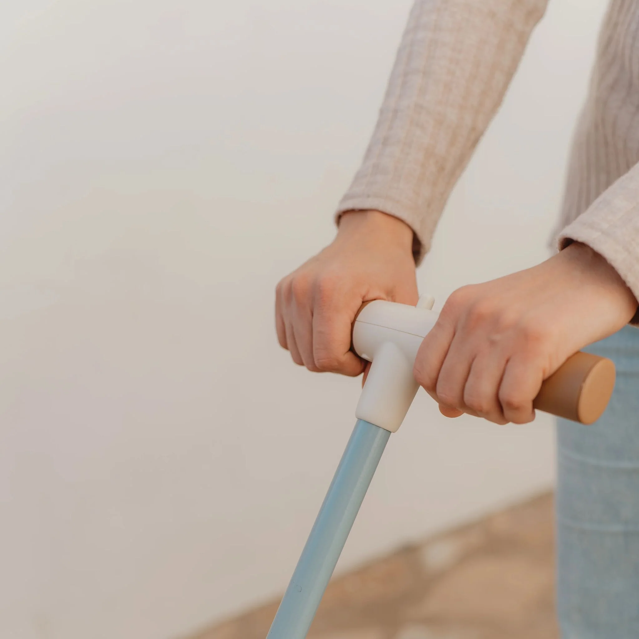 Hup, tijd om eropuit te gaan! Met deze mooie zachtblauwe 4-in-1 loopfiets zijn de eerste (fiets)avonturen zo gemaakt. Ideaal om spelenderwijs kennis te maken met fietsen. Is je kleintje nog niet toe aan zelf lopen of fietsen? Geen probleem, met de duwstang help je een handje. Veiligheid voor alles, dankzij de riem en de veiligheidsring, die je eenvoudig kunt verwijderen als ze niet meer nodig zijn. Van driewieler naar loopfiets in een handomdraai, en de trappers? Die berg je slim op onder het zadel! Licht, compact en verstelbaar voor kinderen van 1 tot ongeveer 3 jaar.