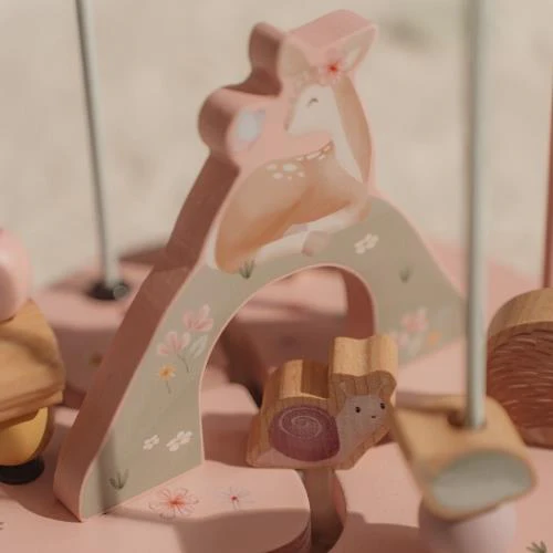 Breng de kralen van links naar rechts in de magische wereld van Fairy Garden. Onderweg ontmoet je het lieve hertje, de egel, het lieveheersbeestje en de kleine slak, die leven en spelen in de tuin. Schuif ze heen en weer om de bloeiende bloemen, weelderige bladeren en sappige aardbeien te ontdekken die in de tuin groeien. Gebruik je verbeelding en laat het avontuur beginnen! Deze houten activiteitenspiraal biedt een leerzame en betoverende ervaring voor je kindje.