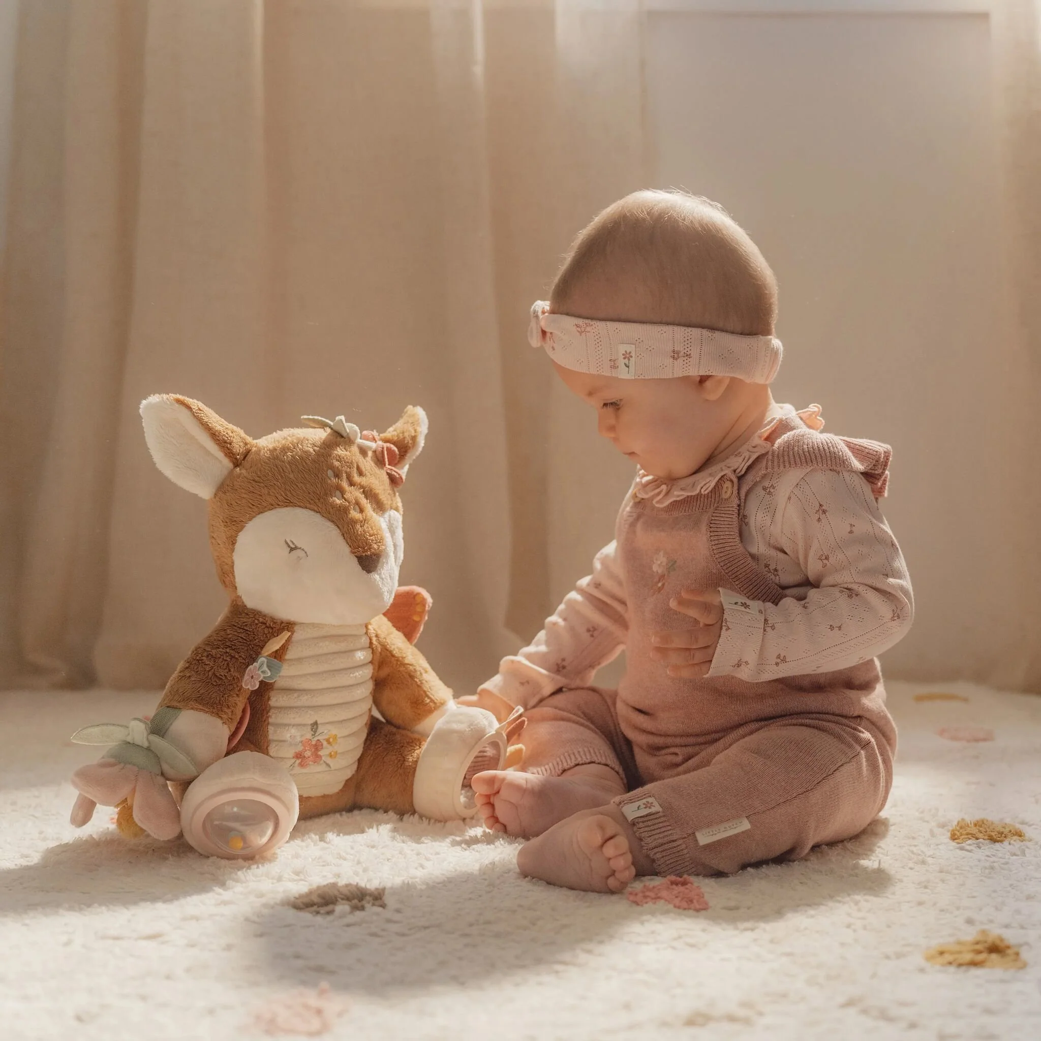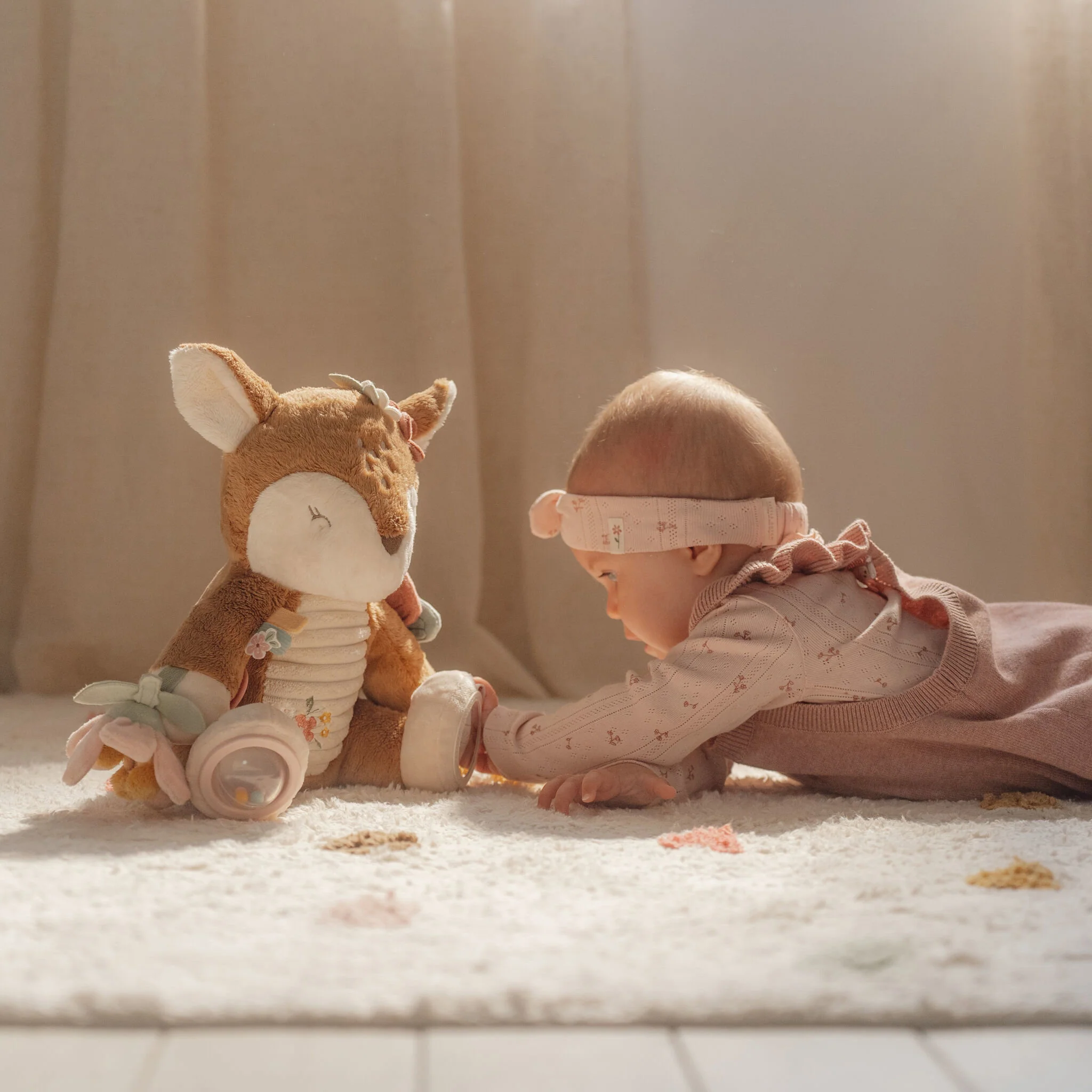Knuffel en speel! Dit lieve hertje belooft meer dan alleen maar knuffels. Ontdek alle activiteiten die het verbergt. Het ratelende geluid, de knisperende vlinder op de schouder, en labels en bloemen om mee te friemelen. De ringen om het pootje en de spiegel onder één voetje – zoveel details om de nieuwsgierigheid van je kleintje te stimuleren. En na al dat spelen, inspireert het schattige hertje de zoetste dromen over de feeëntuin Fairy Garden.