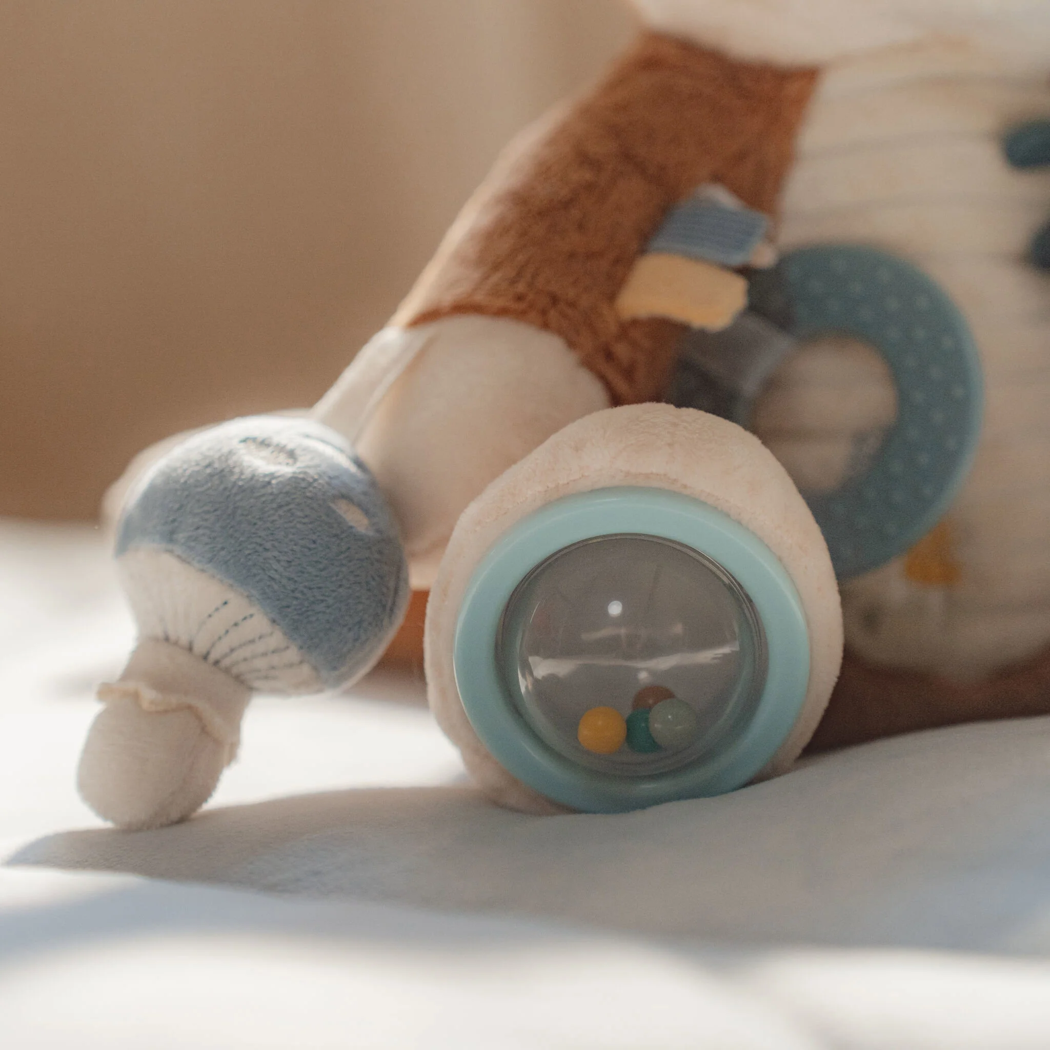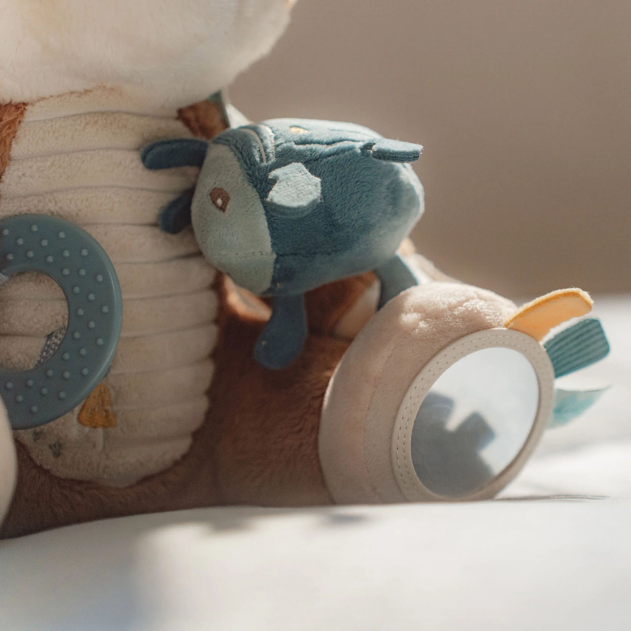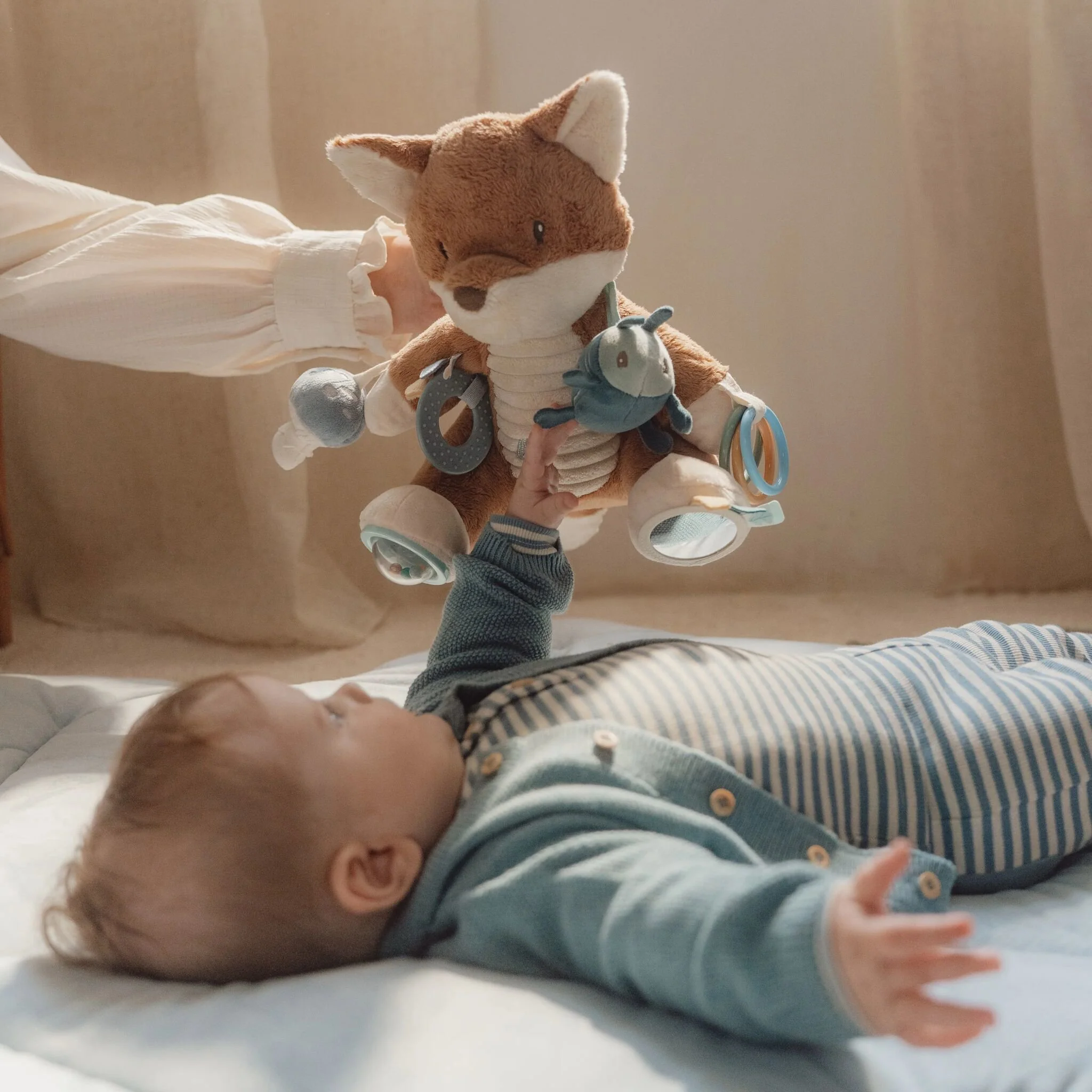 Knuffel en speel! Dit lieve vosje belooft meer dan alleen maar knuffels. Ontdek alle activiteiten die het verbergt. Het ratelende geluid, de knisperende kever op de schouder, en labels, een eikeltje en paddenstoel om mee te friemelen. De ringen om het pootje en de spiegel onder één voetje – zoveel details om de nieuwsgierigheid van je kleintje te stimuleren. En na al dat spelen, inspireert het schattige vosje de zoetste dromen over het betoverende bos waar Forest Friends spelen.
