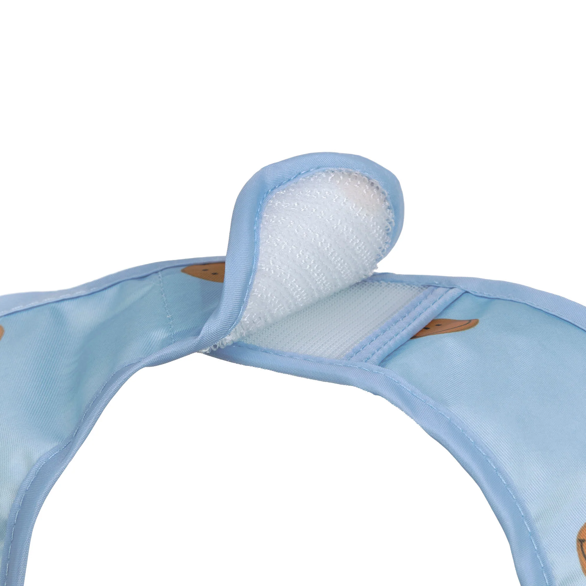 Grâce à la fermeture Velcro pratique au dos, le bavoir se fixe et s’enlève en toute simplicité.
