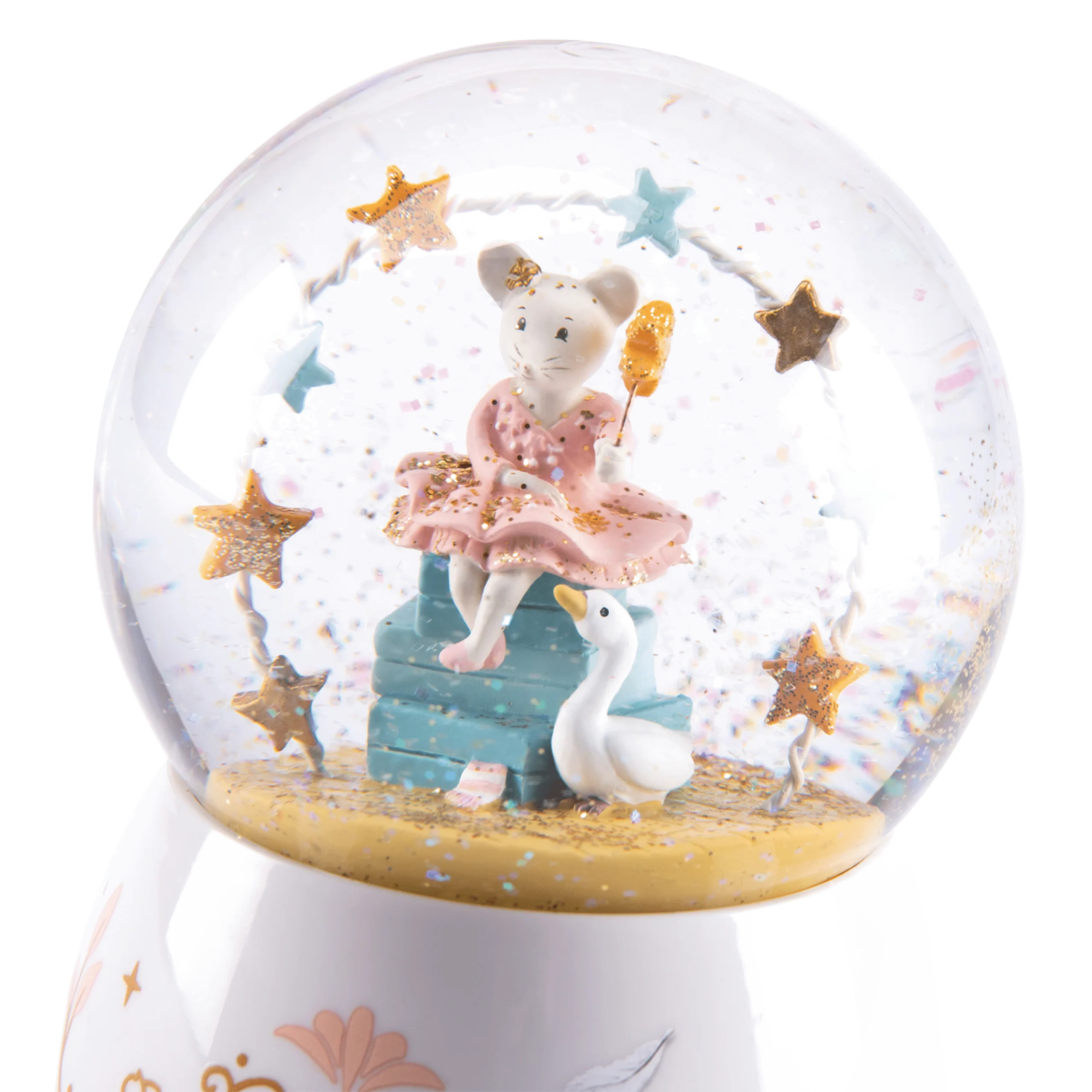 Cette magnifique boule à neige musicale Moulin Roty avec la petite souris et son oie qui font la fête au milieu des paillettes holographiques ! En plus de décorer la chambre, une jolie mélodie viendra bercer bébé au moment du coucher…