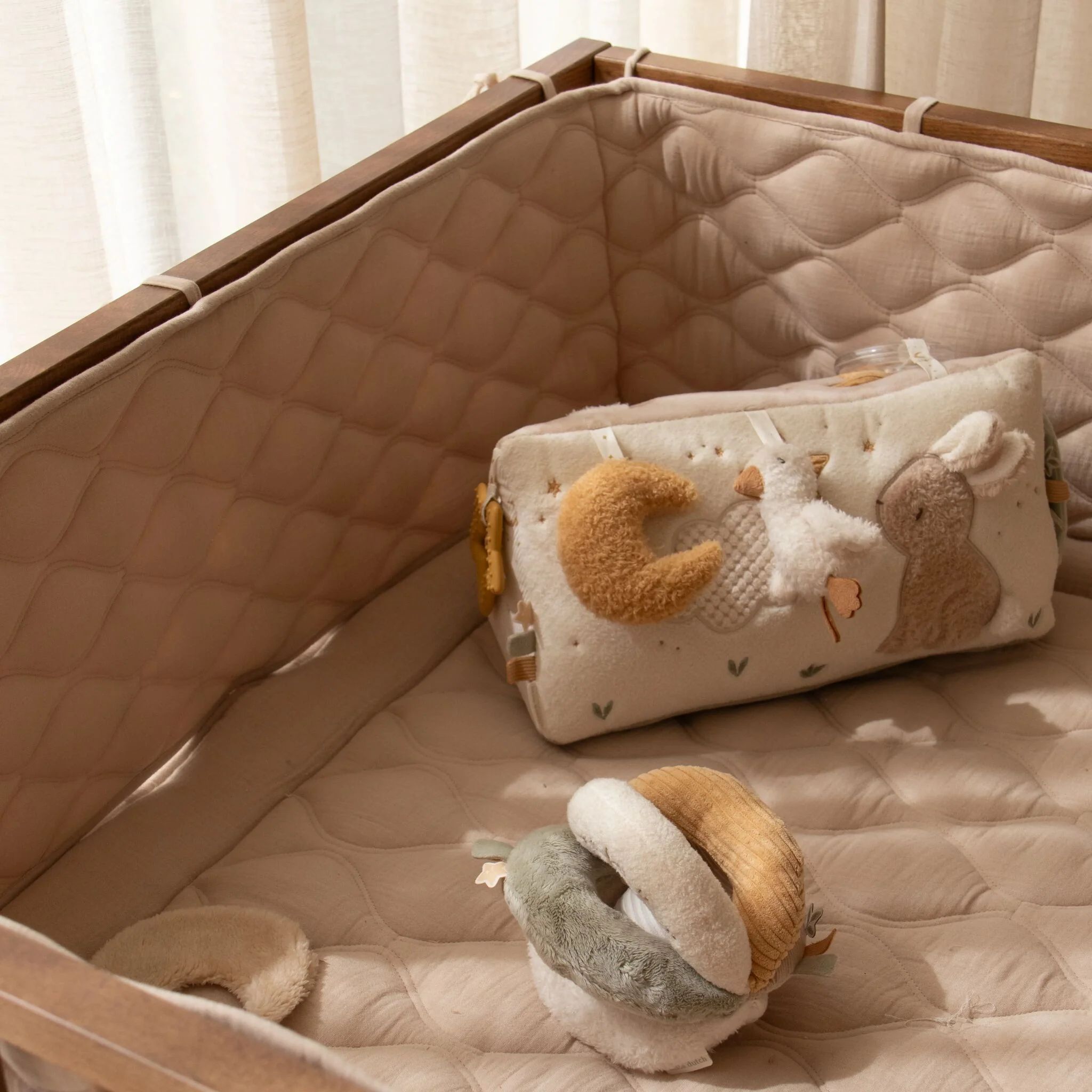 Deze Little Dutch boxomrander beschermt je kleintje tegen de spijlen van de box. Zo blijft spelen en ontdekken altijd veilig en comfortabel. De omrander creëert een knus hoekje vol geborgenheid en is eenvoudig vast te maken met strikken. Combineer met een bijpassend Little Dutch boxkleed voor een sfeervol geheel.