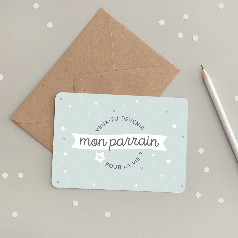 La carte Zü « Veux-tu devenir mon parrain », voici une manière originale de demander à la personne de votre choix d’être le parrain de votre enfant.