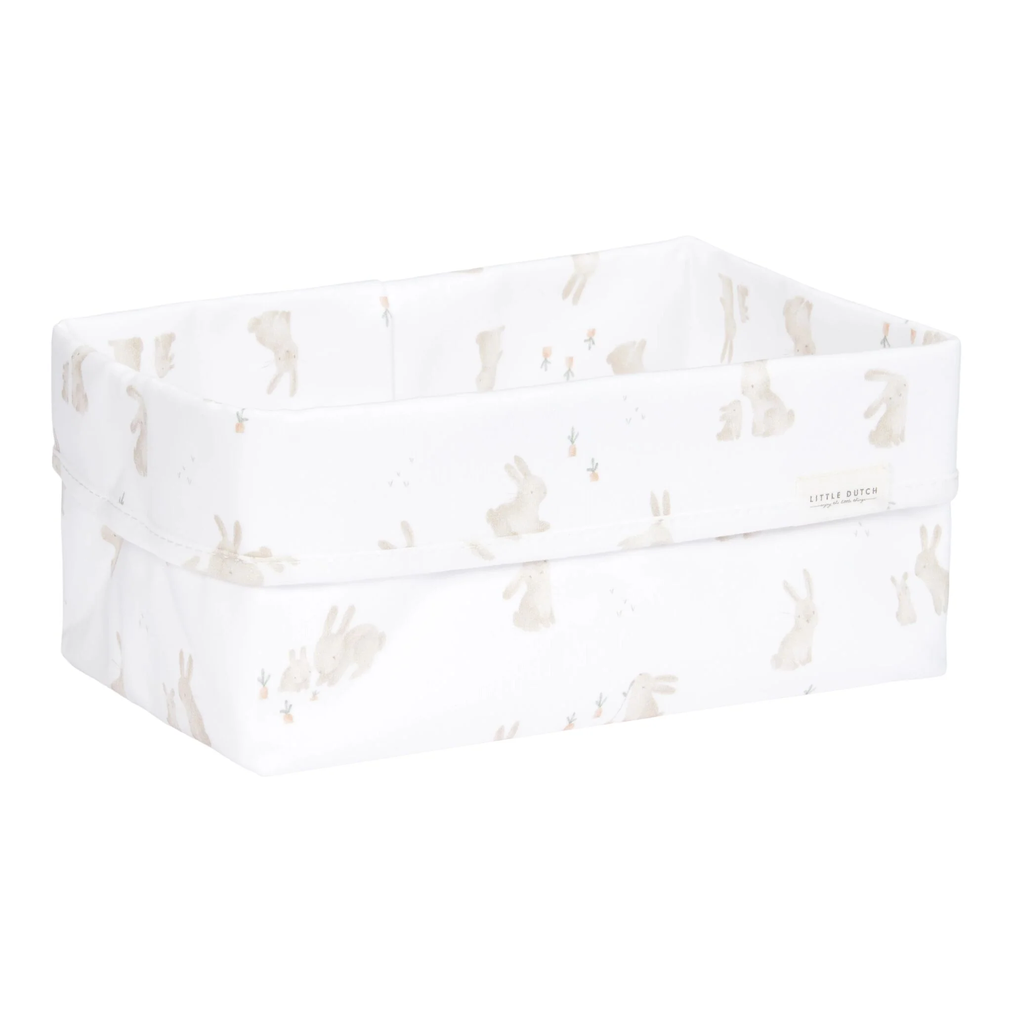 Geen rondslingerende luiers, tubes en flesjes meer: dit Little Dutch commodemandje houdt de verschoontafel netjes en georganiseerd! De Little Dutch commodity mand is mooi afgewerkt en biedt een opbergplek voor alle producten die je dagelijks nodig hebt voor de verzorging van je baby. Een mooi accessoire voor de babykamer. Deze uit de Baby Bunny collectie in mooie rustige kleur is verrijkt met lieve konijnenprint. Ook verkrijgbaar in andere maten en vormen.