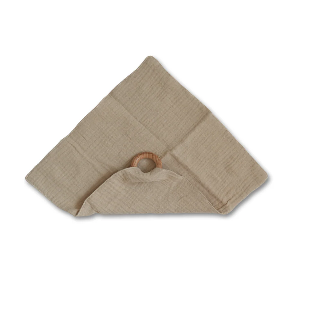 Tissu hydrophile doux avec anneau de dentition en bois. un joli doudou pour se blottir dans des tons doux et neutres !