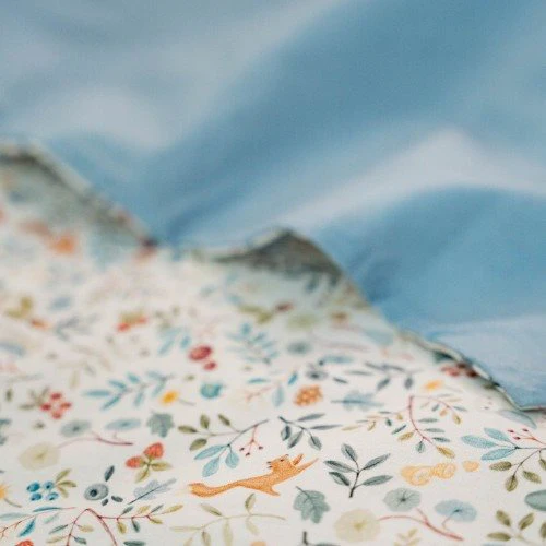 Voeg een vleugje design toe aan de babykamer met een prachtig opgemaakt bed. Met dit dekbedovertrek zal je kleintje heerlijk wegdromen naar avontuur. Het dessin Forest Wonders inspireert de mooiste dromen over een avontuurlijk bos met de schattigste dieren zoals eekhoorns, uilen, egels en vogels. Het zachte dekbedovertrek is gemaakt van 100% biologisch katoen met het Forest Wonders dessin aan de ene kant en een effen Denim Blue kleur aan de andere kant. Het dekbedovertrek is comfortabel, mooi afgewerkt en heeft een goed ademend vermogen.