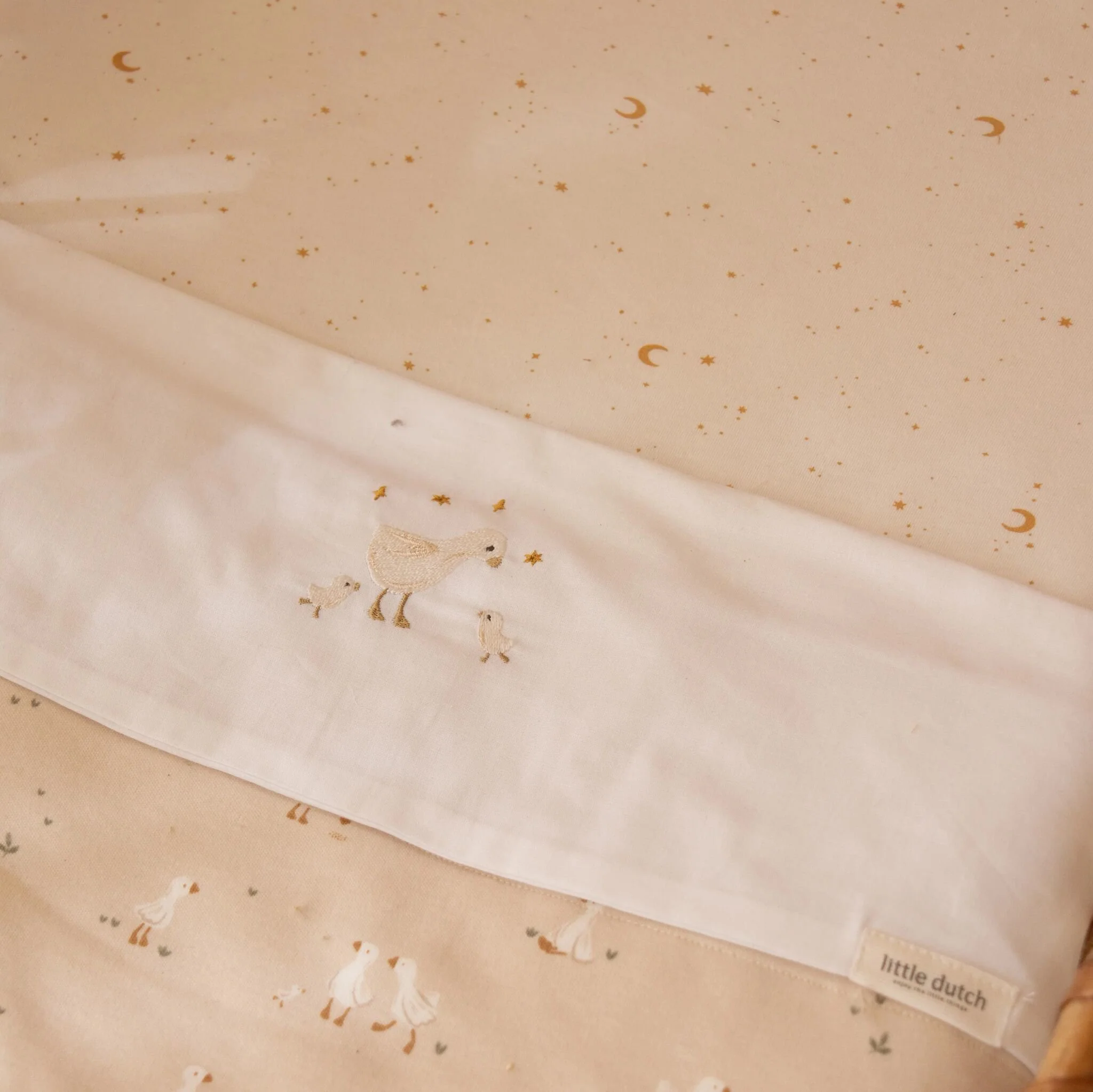 Bedek het matras van je kleintje met dit hoeslaken voor een goede nachtrust, zodat ook de kleinste sterren lekker kunnen slapen. Het zachte biologische katoen, behandeld met een perzikwassing, zorgt voor rustgevend comfort waar zelfs de wildste dromen van tot rust komen. Het elastische katoen sluit perfect om het matras en blijft mooi, zelfs na meerdere wasbeurten. De crèmekleur met de schattige Moon & Stars print brengt een dromerige sfeer in de kamer van je kindje en past prachtig bij het beddengoed van Little Dutch.