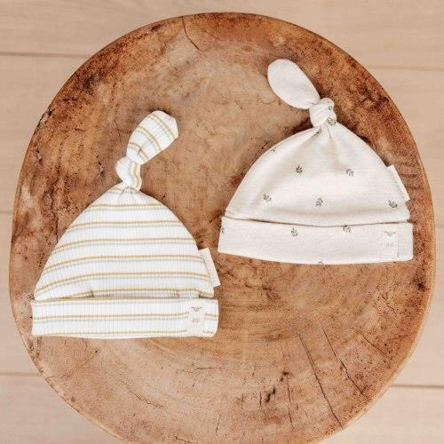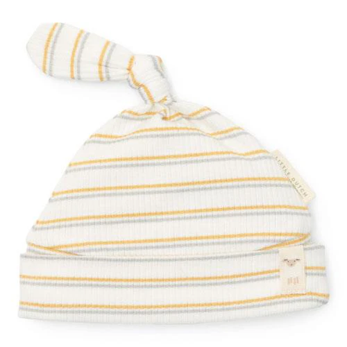 Comfort en stijl gaan voorop! Dit schattige mutsje met omgeslagen rand is ontworpen om je kleintje warm en stijlvol te houden tijdens de eerste weken. Gemaakt van fijn biologisch katoen, omhult het het hoofdje met zachtheid, zodat je baby lekker warm blijft. De geribbelde textuur van de stof heeft een prachtig gestreept patroon voor een veelzijdige look. Combineer het met de items uit de Little Farm-collectie voor een extra schattige uitstraling. Verkrijgbaar in maten 0-3 maanden en 3-6 maanden voor een perfecte pasvorm vanaf het allereerste begin.
