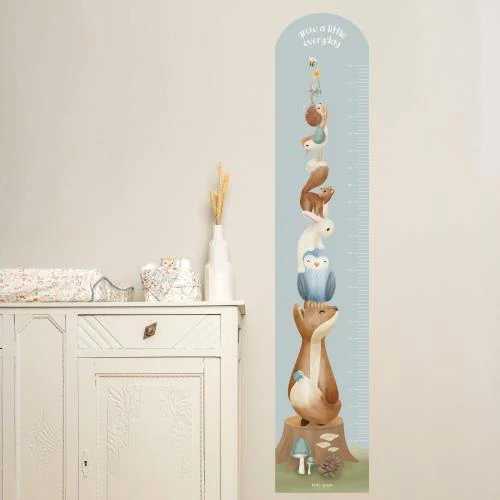 Hou bij hoe snel de kleine groeit met de groeimeter muursticker met Forest Friends thema! De groeimeter bevat bosvriendjes zoals de vos, egels, slakken, de wijze uil en bladeren en paddenstoelen. De muursticker is gemakkelijk te plakken en te verwijderen, dankzij het hoogwaardige, zelfklevende materiaal. Het betreft één sticker, met een matte afwerking en transparante plakrand die een luxueuze look geeft. Je kunt deze plaatsen op muren, en andere gladde, harde oppervlakken. Zorg voor een schoon en vlak oppervlak voor het beste resultaat. Geniet van de landelijke charme, elke dag opnieuw, met deze vrolijke en speelse Little Dutch groeimeter.