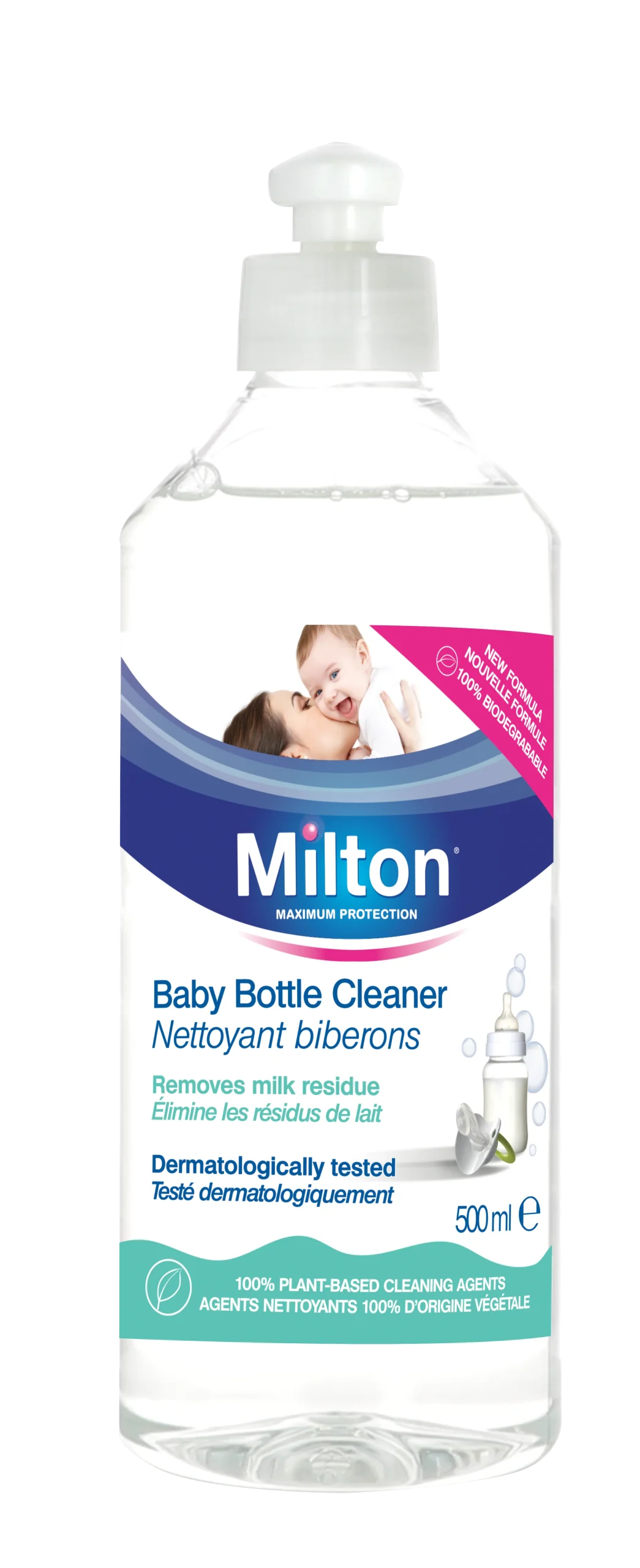 Le Nettoyant Biberons Milton est spécifiquement conçu pour assurer un nettoyage sûr et efficace de la vaisselle et des accessoires de bébé.