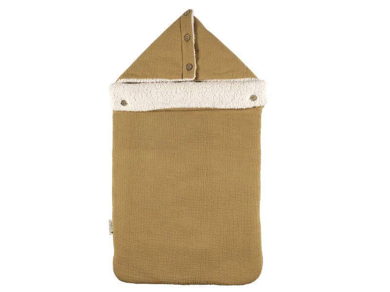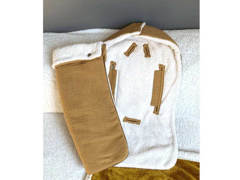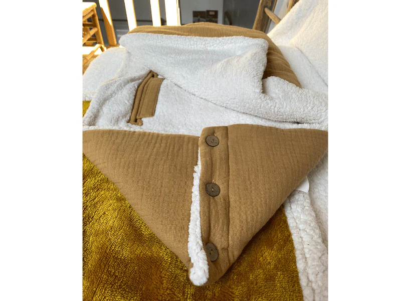 En triple gaze de coton à l’extérieur, il est doublé en moumoute.