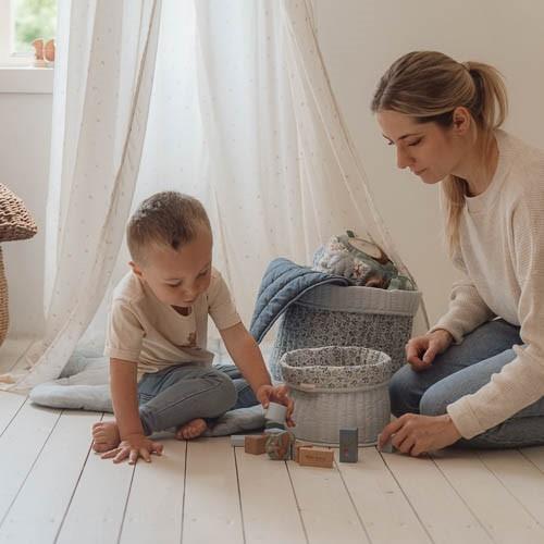 Houd de kinderkamer georganiseerd en netjes met deze decoratieve gewatteerde opbergmand. Gemaakt van hoogwaardig 100% biologisch katoenen popeline, biedt deze ronde mand zowel stijl als functionaliteit. Omkeerbaar met een omgevouwen rand, heeft het een Forest Adventure-ontwerp aan de buitenkant en een casual Denim Blue kleur aan de binnenkant. Perfect voor het opbergen van speelgoed, dekens, […]
