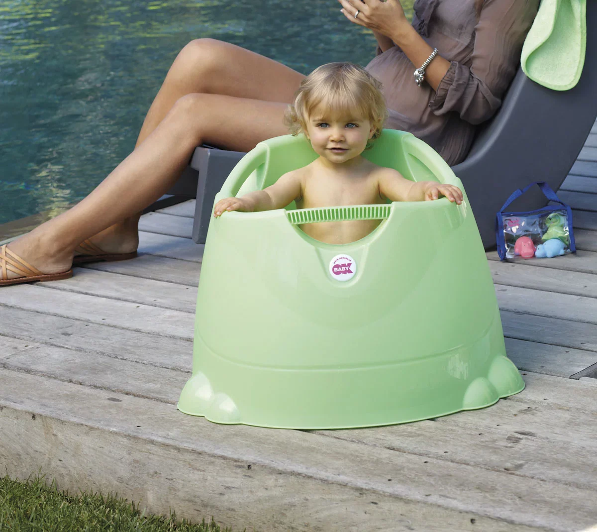 Siège de douche pour laver bébé en toute tranquilité dans la douche. Il peut également s’utiliser comme petite piscine à l’extérieur.