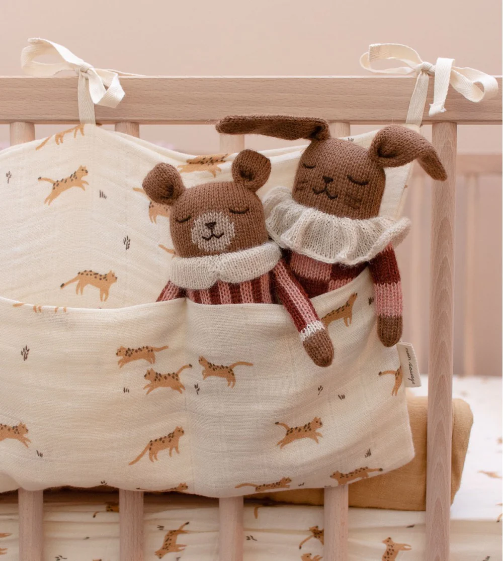 Notre organiser de lit bébé – Bay leaves est à la fois élégant et fonctionnel, avec trois poches pour ranger facilement langes, doudous, tétines et autres indispensables au moment du coucher. Grâce à ses cordons ajustables, il s’adapte sans difficulté à tous types de lits à barreaux. Il est également pratique dans la salle de bains ou près de la table à langer.