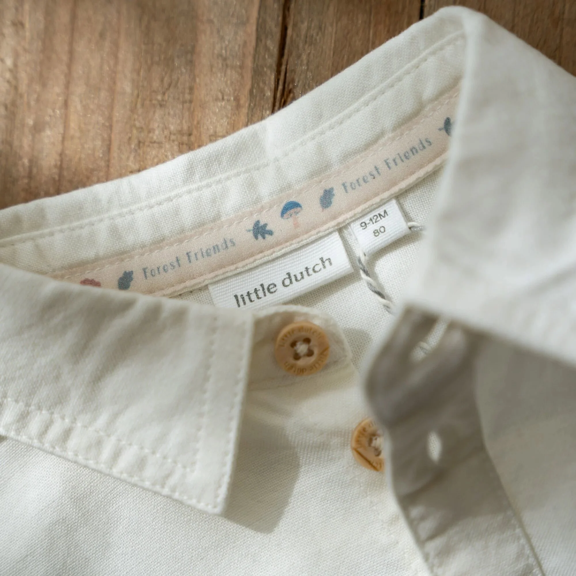 Dit is het overhemd voor de kleine gentleman die er moeiteloos stijlvol uit wil zien. Dit witte overhemd van Little Dutch is gemaakt van biologisch katoen met een subtiele textuur en is perfect voor elke gelegenheid. De houten knopen geven het klassieke ontwerp een stoere touch. Dus of hij nu zijn eerste ‘fancy’ feestje heeft of gewoon een middagje indruk gaat maken op opa en oma – dit overhemd heeft alles wat hij nodig heeft om zijn look compleet te maken. Waarschuwing: de kans is groot dat hij zo knap is dat je hem de hele dag wilt knuffelen. Verkrijgbaar in de maten 74, 80, 86, 92, 98 en 104.