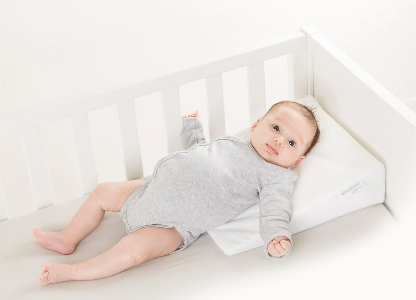 Le plan incliné doomoo basics permet de surélever (angle de 15°) la partie supérieure du corps de l’enfant durant son sommeil.