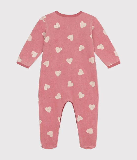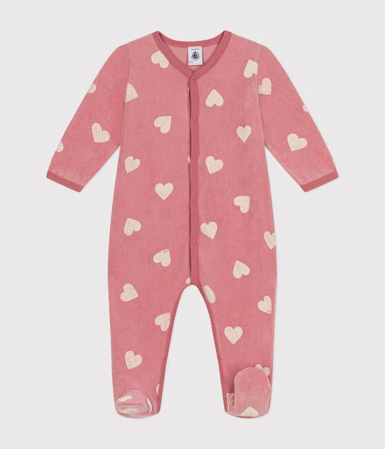 Pyjama bébé rayé en velours imprimé motif coeurs