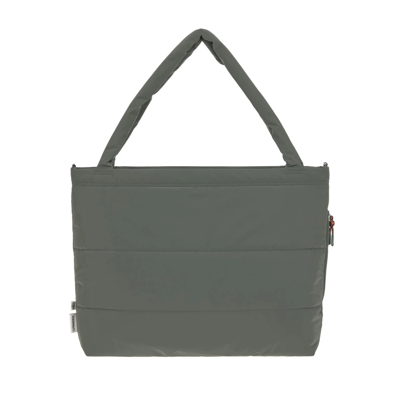 Le cabas est composé à 100 % de polyester, est sans PFC, hydrofuge et peut également être utilisé comme sac pour ordinateur portable au-delà du temps de changement.