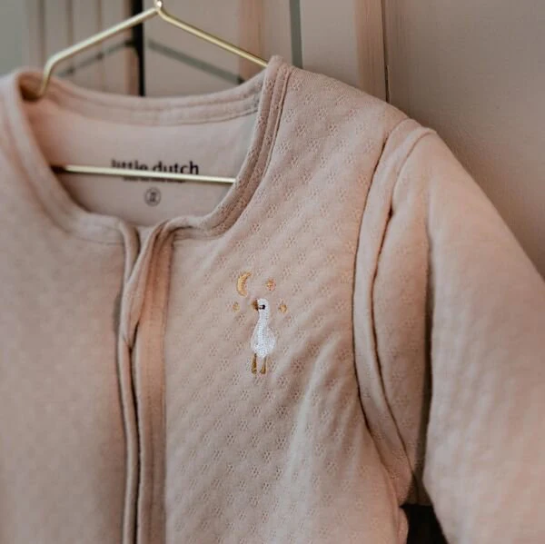 Houd je kleintje warm en knus deze winter met de Little Dutch winterslaapzak in de elegante Soft Beige kleur. Gemaakt van luxe jersey jacquard stof en 100% biologisch katoen, voelt hij heerlijk zacht aan. Het schattige borduursel met gansje op de borst zorgt voor een vleugje charme, terwijl de ronde onderkant en afritsbare mouwen praktisch en comfortabel zijn. Perfect voor koude nachten en schattige dromers. Er zit een flap over de rits om de gevoelige babyhuid te beschermen. De slaapzak is verkrijgbaar in 70 cm en 90 cm.