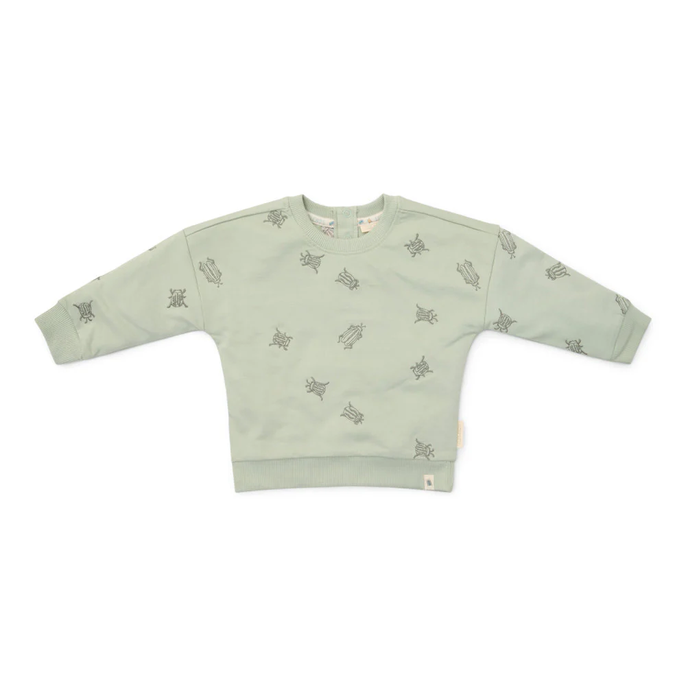 Hoeveel insecten tel jij op deze leuke trui?! Omhul jezelf met de zachtheid en charme van deze mintgroene trui, versierd met kleine kruipende insecten en kevers. Elk insect is fijntjes geborduurd, waardoor er een betoverend patroon ontstaat dat de verbeelding van je kleintje stimuleert. Gemaakt van biologisch katoen, is het de perfecte trui voor die frisse lentedagen of koele zomeravonden. Alle items binnen de Forest Friends-collectie zijn zorgvuldig op elkaar afgestemd, zodat je eindeloos kunt mixen en matchen. Verkrijgbaar in maten 74, 80, 86, 92, 98 en 104.