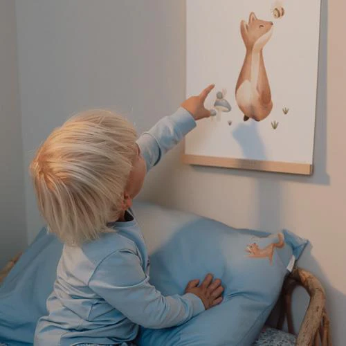 « Slaap zacht, » zegt de wijze uil, « het is tijd om naar bed te gaan! » Geniet van bedtijd in deze schattige pyjama. De lichtblauwe broek heeft een charmante print van blaadjes, uiltjes en andere vondsten uit het bos, en het effen lichtblauwe shirt is versierd met een uil en zijn eekhoornvriendje. Gemaakt van biologisch katoen, is deze pyjama zacht voor je baby’s huid en perfect te matchen met de bijpassende beddengoed. Verpakt in een mooie geschenkdoos en verkrijgbaar in maten 62/68, 74/80, 86/92 en 98/104.