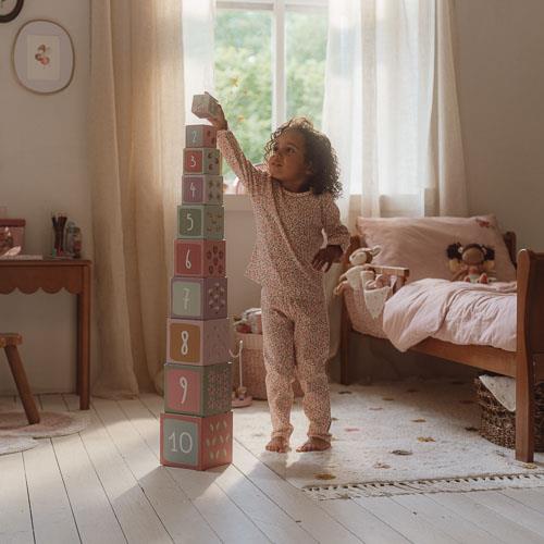 Flower Power Pyjama! Voeg een beetje Fairy Floral stijl toe aan je bedtijd met deze schattige tweedelige pyjama. Gemaakt van comfortabel ribmateriaal, heeft deze pyjama een mooie roze print versierd met schattige kleine bloemetjes. De mouwen zijn afgewerkt met frivole ruches en hebben een gestikt randje aan de zijkant voor een vleugje extra charme. Gemaakt van biologisch katoen en ontworpen om perfect bij het beddengoed te passen, is deze pyjama niet alleen stijlvol maar ook zacht en comfortabel voor de huid van je baby. Verpakt in een mooie doos, dus extra leuk om cadeau te geven. Verkrijgbaar in maten 62/68, 74/80, 86/92 en 98/104.