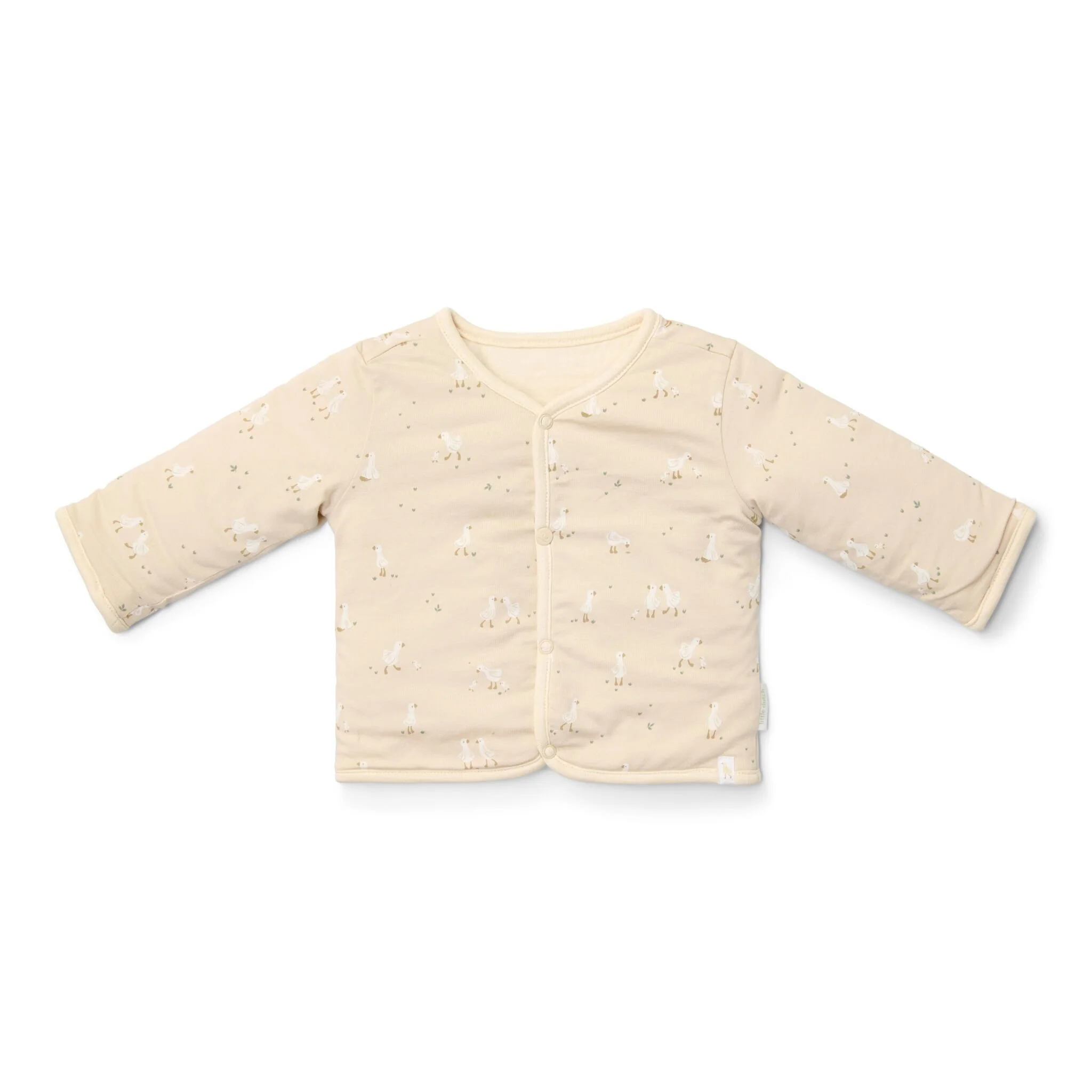 Twee stijlen in één! Deze omkeerbare jas is perfect voor de kleine trendsetter die graag varieert. Een subtiele zandkleur met een charmant crinkle-effect aan de ene kant en de vrolijke Little Goose print aan de andere – zo kun je eindeloos mixen en matchen. Gemaakt van zacht biologisch katoen en Oekotex-gecertificeerd, dus niet alleen comfortabel voor je kleintje, maar ook vriendelijk voor de planeet. Of je nu kiest voor rustig en stijlvol of speels en vrolijk, deze jas past altijd bij je. Verkrijgbaar in de maten 44 tot en met 74, voor elk avontuur en elke stemming.